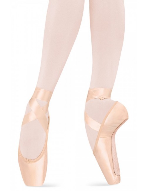 • La plateforme est de forme rectangulaire avec une boîte moins haute, favorisant un support latéral dans les élévations sur pointes. La plateforme large de la Serenade peut aider à soutenir une danseuse qui a tendance à mettre ses orteils trop en avant ou à tomber sur les côtés lorsqu'elle monte sur pointes.