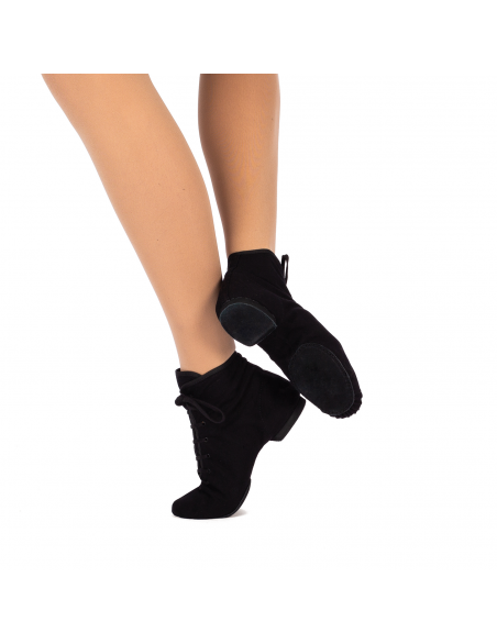 Bottine en toile mi-hauteur entièrement doublée. Elle soutient le pied afin de donner une grande liberté de mouvements aux danseurs.