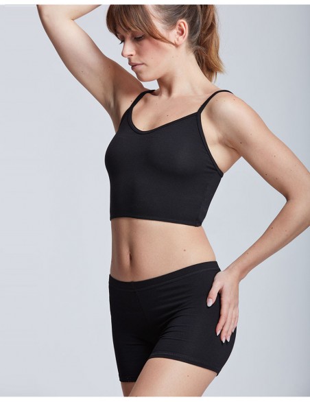 Top de danse court avec fines bretelles, parfait pour vos cours de danse : classique, jazz ou contemporain et même pour vos cours de yoga et de pilates.