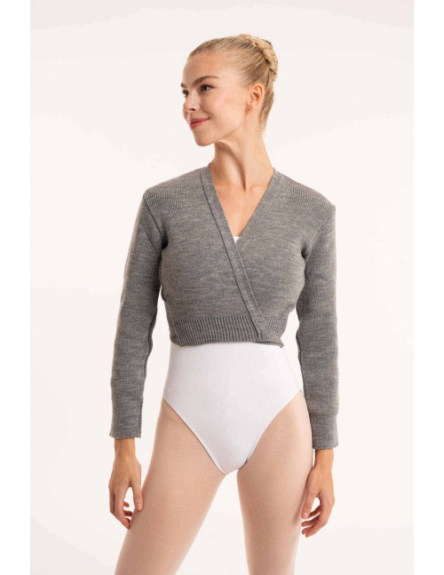Cache-cœur en maille acrylique souple et douce, manches longues, à nouer dans le dos.