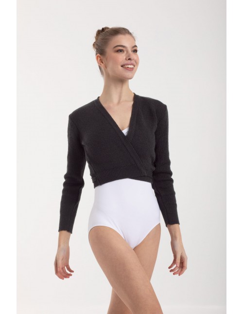 Cache-cœur en maille acrylique souple et douce, manches longues, à nouer dans le dos.