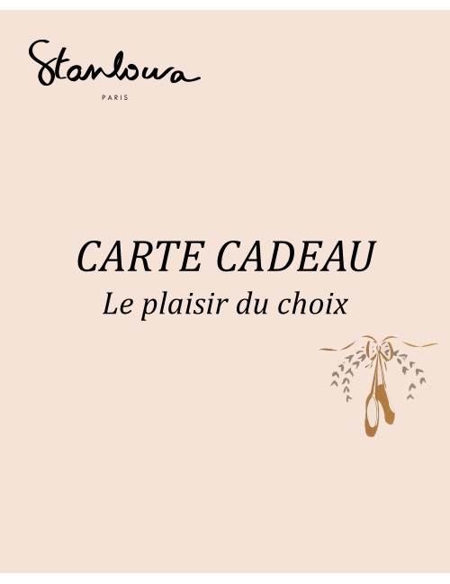 Une Carte Cadeau pour la boutique Stanlowa Paris d'un montant de 20, 50, 80, 100, 200, 300, 400, 500 euros. Le cadeau parfait pour faire plaisir à un proche qui pratique la danse classique, le yoga, pilates ou qui aime simplement les articles de qualité.