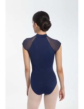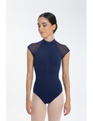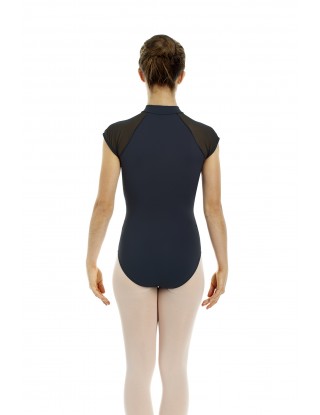 Justaucorps col officier avec zip devant avec empiècement mesh stretch sur les manches. Un justaucorps très moderne qui va autant pour les cours de danse classique que contemporaine.