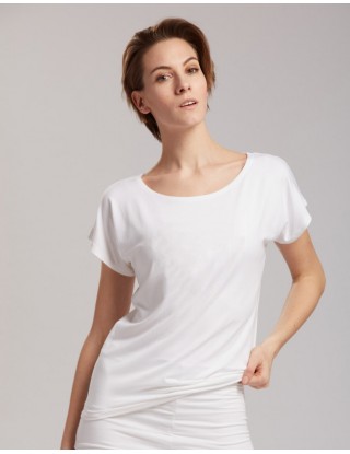 Tee-shirt en viscose doux et fluide. Idéal pour l'échauffement, la relaxation et la méditation. Coupe loose, ultra-confortable. Col élargi style marinière pour une plus grande aisance.